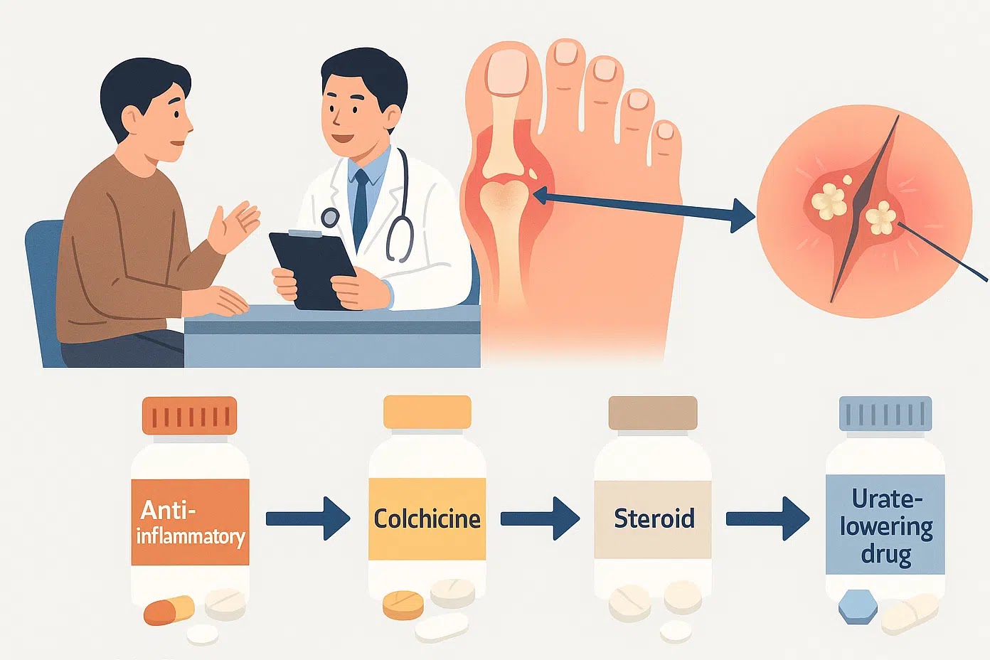 식이요법과 금주, 체중 관리 등 생활습관 개선도 함께 실천해야 합니다. 증상이 없어졌다고 해서 임의로 약을 끊어서는 안 되며, 정기적인 검진으로 요산 수치를 모니터링하고 합병증을 예방해야 합니다.